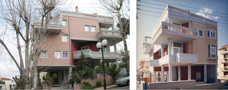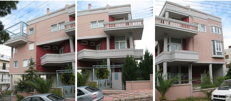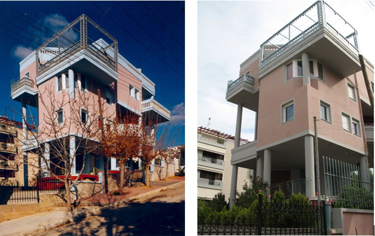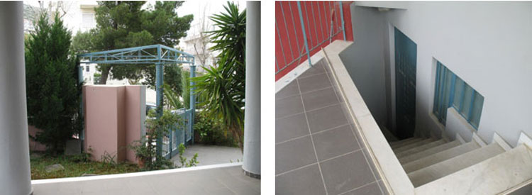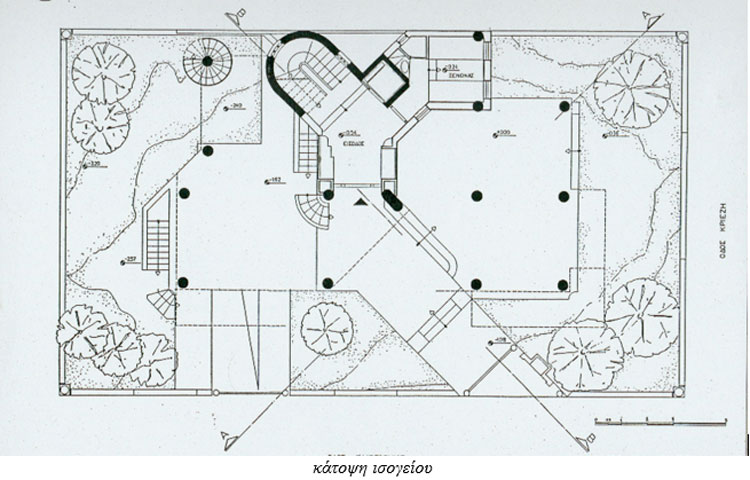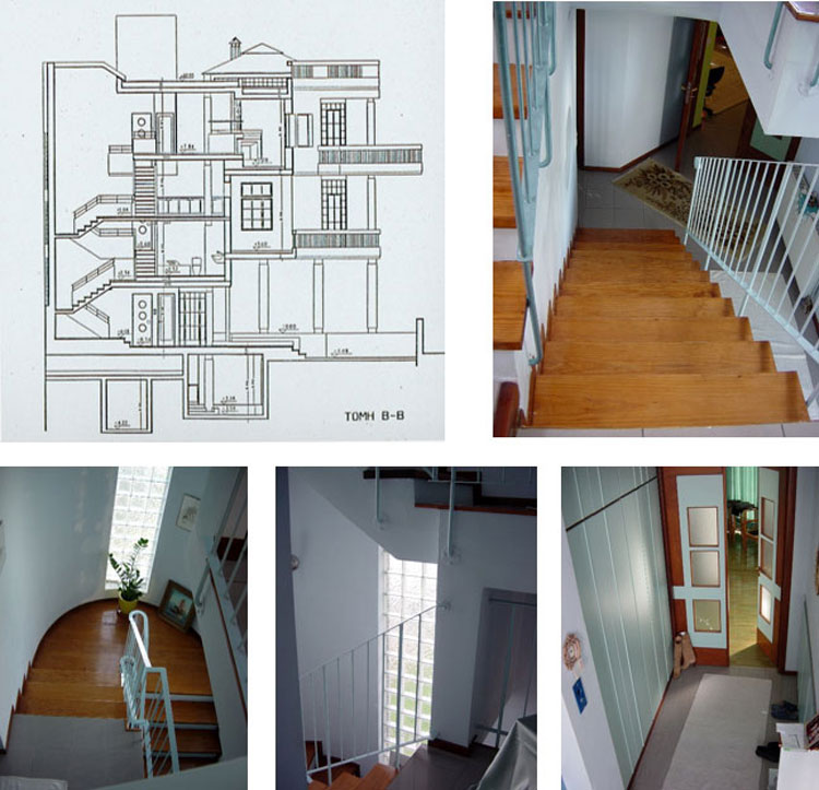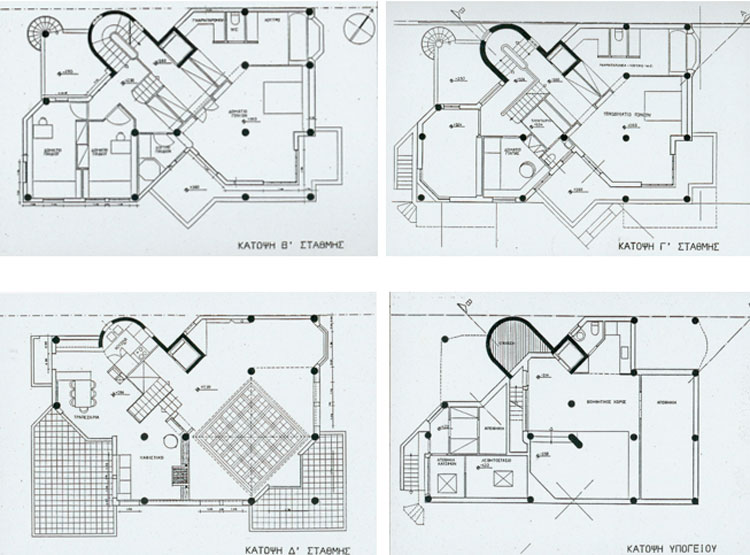 Η κατοικία οργανώνεται καθ’ ύψος ώστε να εξασφαλιστεί η καλύτερη δυνατή θέα στους επόμενους ορόφους. Το ισόγειο περιλαμβάνει χώρους πρόσβασης, ενώ στις χαμηλότερες στάθμες τοποθετούνται ιδιωτικοί χώροι με τρόπο ώστε να διατηρείται η επιμέρους ιδιωτικότητά τους. Στο τελευταίο επίπεδο συγκεντρώνονται οι κοινόχρηστοι χώροι με ανοιχτή θέα στο βουνό και τη θάλασσα.