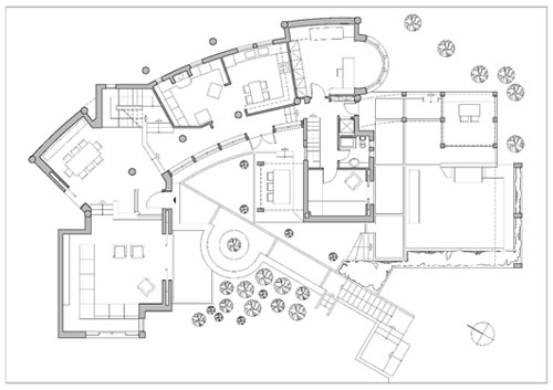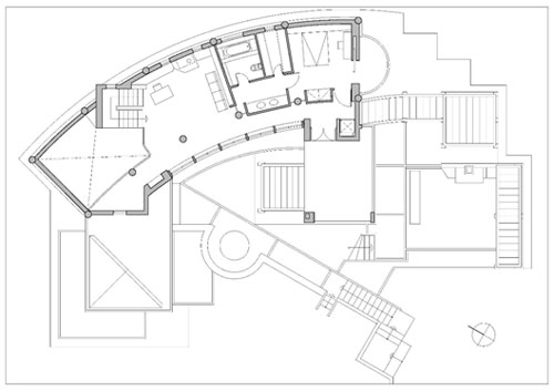 Η κατοικία είναι κύριας διαμονής δύο ατόμων, σ’ ένα πλούσιο φυσικό περιβάλλον με περιορισμένο αριθμό κτιρίων. Οργανώνεται σε δύο επίπεδα: το πρώτο περιλαμβάνει καθιστικό, τραπεζαρία, κουζίνα, γραφείο και ξενώνα, το δεύτερο υπνοδωμάτιο με λουτρό και λοιπούς σχετικούς χώρους.