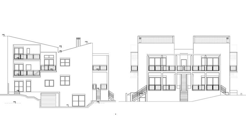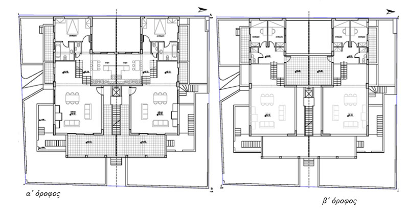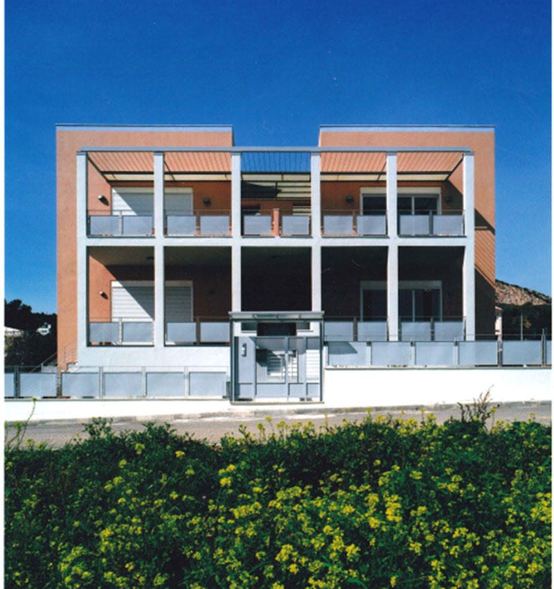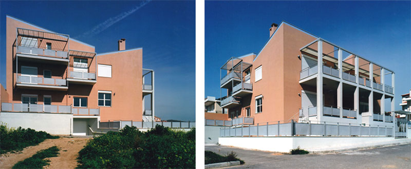 Πρόκειται για 4 κατοικίες σε ένα αραιοδομημένο περιβάλλον, ο υπαίθριος χώρος των οποίων με τον χρόνο θα φυτευτεί στο έδαφος και θα πρασινίσει στους εξώστες και τις πέργκολες. Οι δύο κατοικίες στην Α΄ στάθμη είναι μονώροφες οι δύο άλλες οργανώνονται σε περισσότερα επίπεδα.