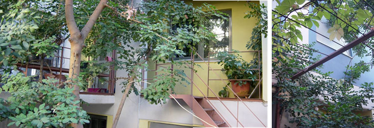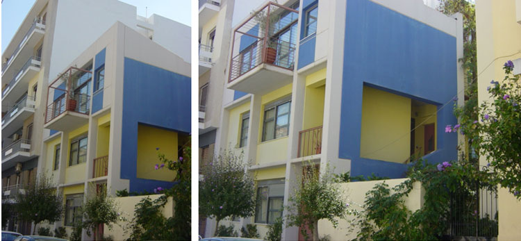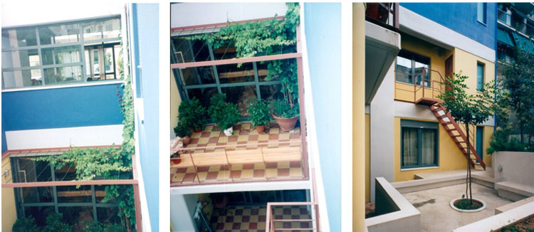 Στο ισόγειο τοποθετείται η πρώτη κατοικία με καθιστικό, τραπεζαρία, υπνοδωμάτιο και κουζίνα. Στον πρώτο και δεύτερο όροφο οργανώνεται μία κατοικία σε δύο στάθμες: στην πρώτη περιλαμβάνονται καθιστικό, τραπεζαρία, κουζίνα και στη δεύτερη μεγάλος γραφειακός χώρος και υπνοδωμάτιο.
