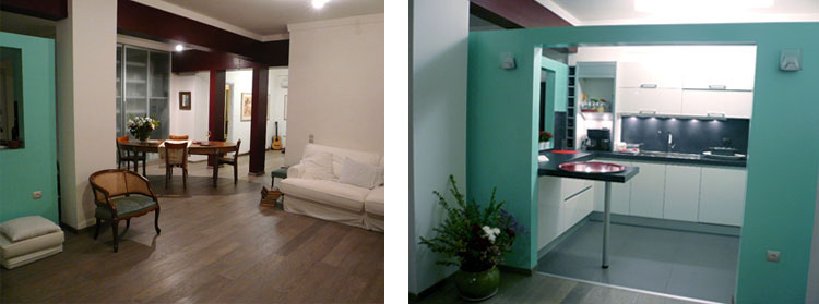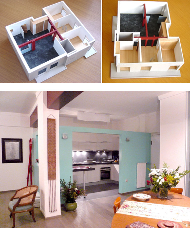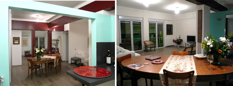 Η κατοικία είχε μια εξαιρετικά αντιλειτουργική εσωτερική οργάνωση. Οι εσωτερικοί τοίχοι αφαιρέθηκαν και οργανώθηκε εκ νέου ο χώρος με χαρακτηριστικά τη διαμπερότητα και την οπτική επικοινωνία. Επίσης σχεδιάστηκε ο εξωτερικός υπαίθριος χώρος.