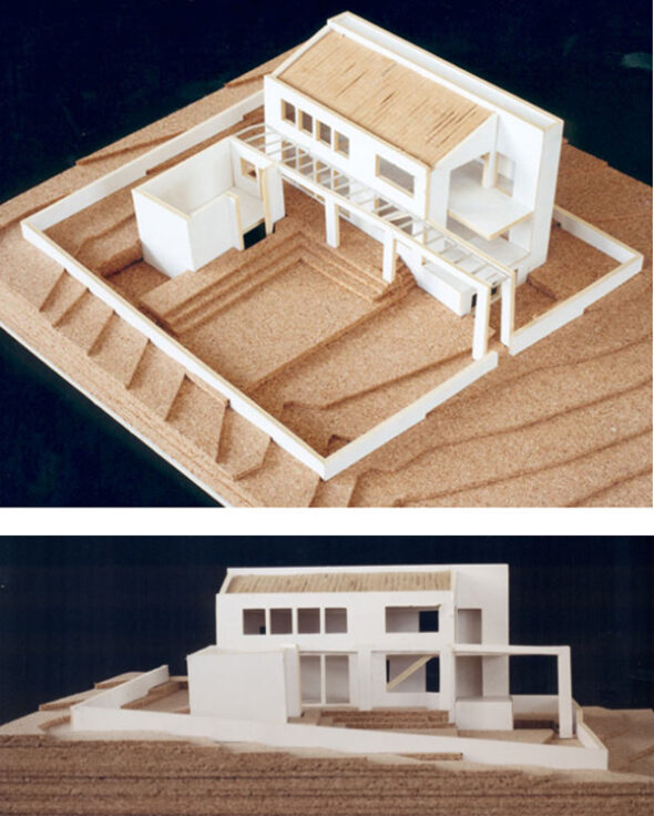 Παραθεριστική κατοικία στο Πόρτο Ράφτη (1999) Η κατοικία οργανώνεται σε μια κεντρική διώροφη ενότητα και ένα μικρό όγκο ώστε να δημιουργηθεί ένας επαρκής αδόμητος υπαίθριος χώρος. Loading